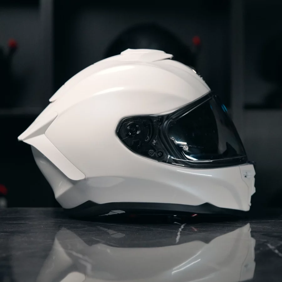 Design blanc nacré fait de ce casque un choix élégant pour tout motocycliste.