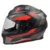 Een sportieve motorhelm in mat zwart, zilver en rood, de Scorpion Exo-491 Abilis, die comfort en bescherming biedt met een modern design.