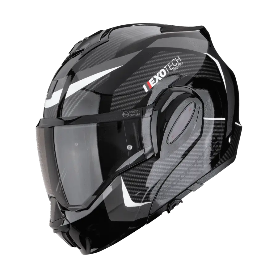 Scorpion Exo-Tech Evo Pro Acuti Black Silver: Flip-back helm in premium Pro-uitvoering
