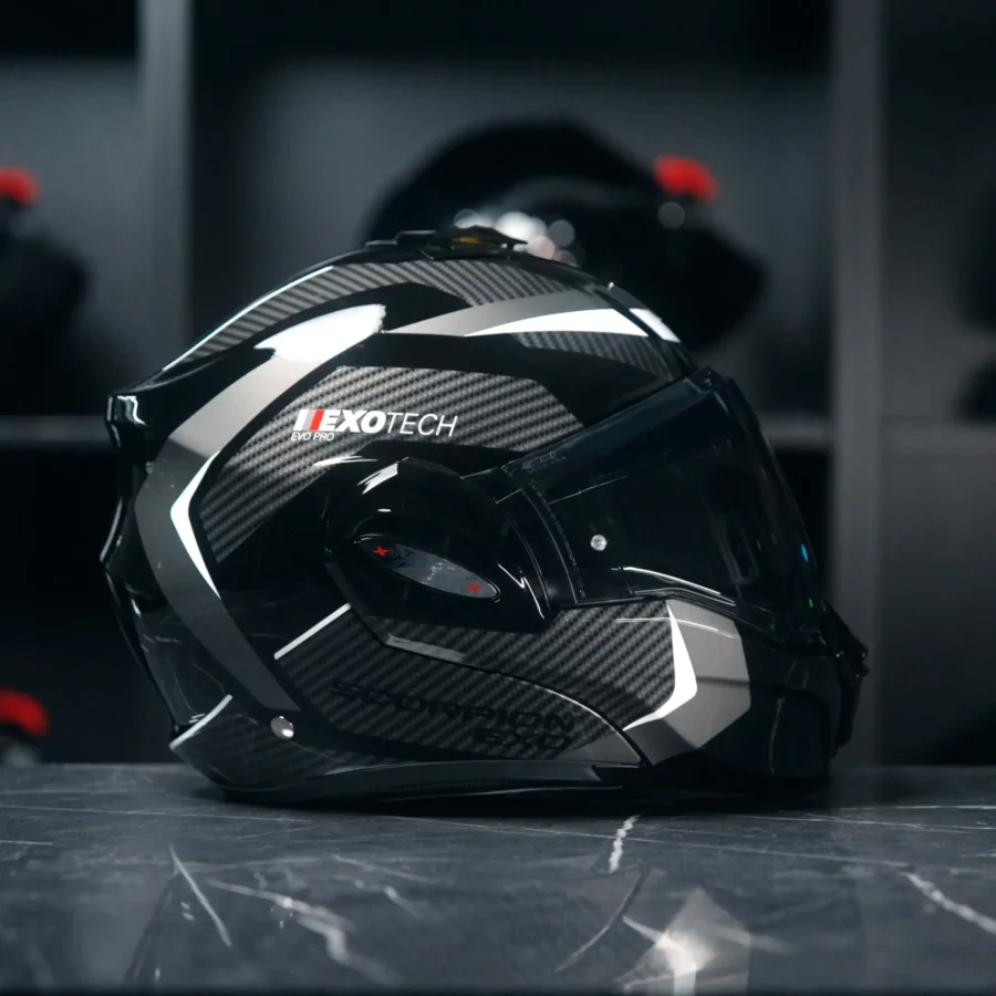 Scorpion Exo-Tech Evo Pro Acuti Black Silver is de nieuwste generatie flip-back helmen van Scorpion. Deze Pro-uitvoering tilt comfort, veiligheid en stijl naar een hoger niveau dankzij de ultramoderne TCT-constructie en luxe afwerking. Het Acuti-design in zwart-zilver straalt klasse en sportiviteit uit, terwijl de helm perfect inspeelt op de wensen van zowel tour- als woon-werkrijders. Bekijk ook onze andere