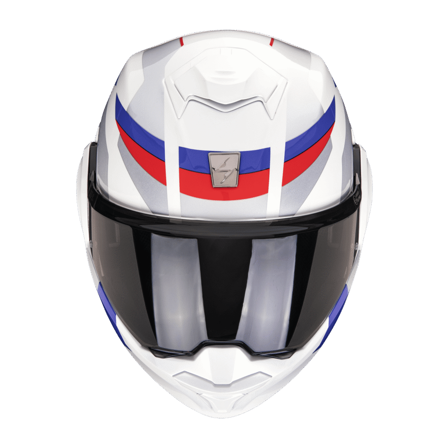 Scorpion EXO-Tech Evo Pro Acuti White Blue Red: premium systeemhelm met sportieve kleuraccenten