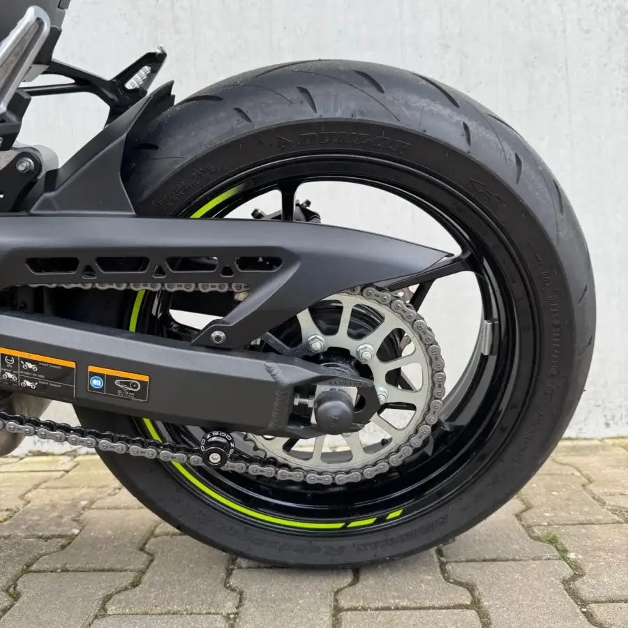 bar-end spiegels krijgt deze motor een extra sportieve look. De combinatie van stijl, performance en comfort maakt deze Z900 tot een ideale keuze voor de motorrijder die houdt van karakter én kwaliteit.