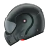 Welke maat heb jij nodig? 54 XS / 56 S / 57 SM / 58 M / 60 L / 61 XL / 63 XXL De juiste maat ROOF helm bepaal je door het opmeten van jouw hoofdomtrek. Het opmeten gaat het makkelijkst met een meetlint. Het meetpunt is het grootste/breedste punt van het hoofd, zo’n 1-2 centimeter boven de wenkbrauwen, tot het meest uitstekende deel op het achterhoofd. Doe meerdere metingen en neem een gemiddelde van de verschillende metingen. Zit je na de meting(en) tussen twee maten in, dan is het verstandig om voor de kleinere maat te gaan, aangezien het helminterieur nog iets zal inslinken naarmate je de helm langer in gebruik hebt. De helmschaal van de ROOF Boxxer is uit glasvezel opgebouwd, die samen met de EPS binnenschaal verantwoordelijk is voor de bescherming. Het totale gewicht komt daarmee op 1600 gram, wat 50 gram lichter is dan de oorspronkelijke Boxer V8. De kinbak van de Roof Boxxer is volledig wegklapbaar en met één hand te vergrendelen, bijvoorbeeld tijdens het rijden. Uiteraard is deze systeemhelm ECE 22.05 gecertificeerd en is die naast in gesloten configuratie goed bevonden om open mee te rijden; dankzij de P/J homologatie. De microbuckle kinbandsluiting verzorgt het gemakkelijke op- en afzetten. Waarbij de vierpuntsbevestiging voor de nodige stabiliteit zorgt.