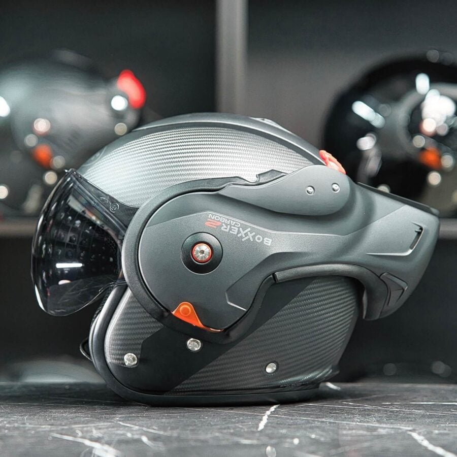 Ontdek de ROOF BOXXER 2 CARBON helm: een staaltje van innovatie en stijl voor de moderne motorrijder. Met zijn 180° kantelbare ontwerp combineert deze helm het beste van beide werelden: de bescherming van een integraalhelm met het comfort en de vrijheid van een jethelm. Vervaardigd uit exclusief koolstofvezel, biedt de BOXXER 2 CARBON niet alleen een prestigieuze uitstraling maar ook een lichtgewicht ervaring zonder in te boeten aan veiligheid.